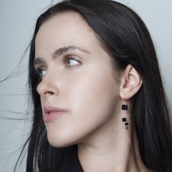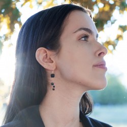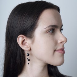 Earrings composed of crystal cubes. These are assembled on 2 rows of nylon thread.