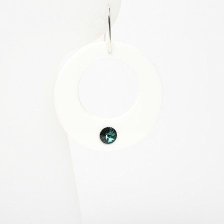 Earrings in recycled opaque Acrylic with a crystal inlay at the bottom.