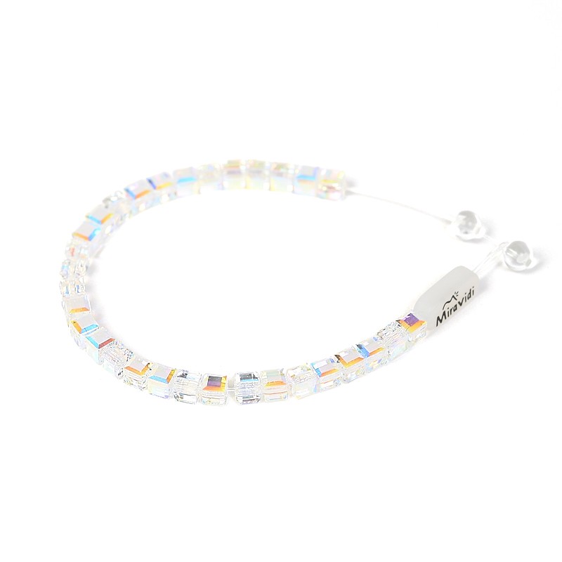 Crystal cubes of 4 mm (0,2 in) by side are threaded on a nylon thread.