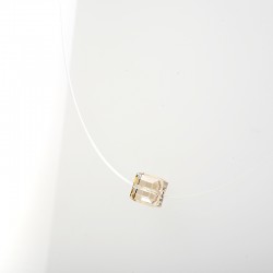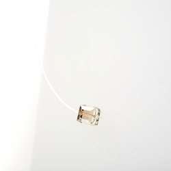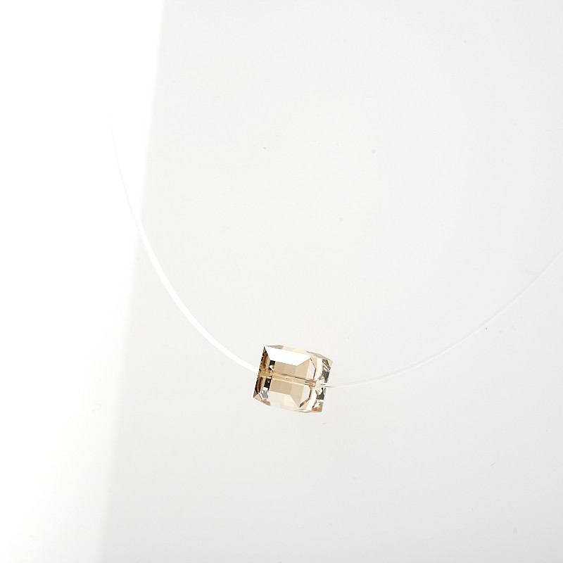 Pendant composed of a crystal cube mounted on a nylon thread. The cube measures 8 cm (0,3 in) on the side. The length of the thread is 42,5 cm (16,7 in). An adjustment allows to reduce the total length by 2 cm (0,8 in). This model exist also in a longer design : + 5 cm (+ 2 in).Recyclable transparent Bioplastic packaging.