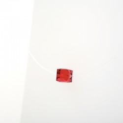 Pendant composed of a crystal cube mounted on a nylon thread. The cube measures 8 cm (0,3 in) on the side. The length of the thread is 42,5 cm (16,7 in). An adjustment allows to reduce the total length by 2 cm (0,8 in). This model exist also in a longer design : + 5 cm (+ 2 in).Recyclable transparent Bioplastic packaging.