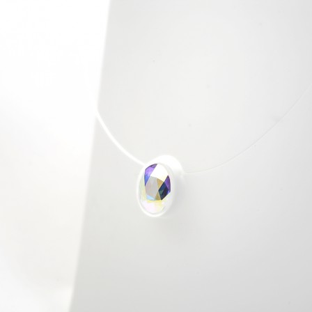 Opaque Acrylic Component in which is fixed a nylon's thread. An oval crystal is inserted in the center. The measurements of the Acrylic are 1,8 x 1,3 cm (0,7 x 0,5 in) and the thickness is 5 mm (0,2 in). The length of the inner thread is 42,5 cm (16,8 in). An adjustment allows to reduce the total length by 2cm (0,8 in). This model exist also in long : + 5 cm (+ 2 in).