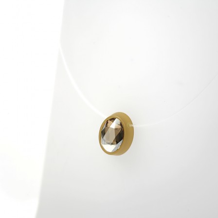 Opaque Acrylic Component in which is fixed a nylon's thread. An oval crystal is inserted in the center. The measurements of the Acrylic are 1,8 x 1,3 cm (0,7 x 0,5 in) and the thickness is 5 mm (0,2 in). The length of the inner thread is 42,5 cm (16,8 in). An adjustment allows to reduce the total length by 2cm (0,8 in). This model exist also in long : + 5 cm (+ 2 in).