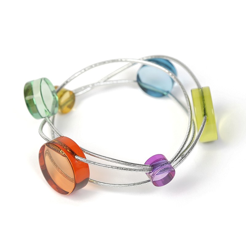 Acrylic Components of different diameters assembled on a metallic elastic thread (without nickel).