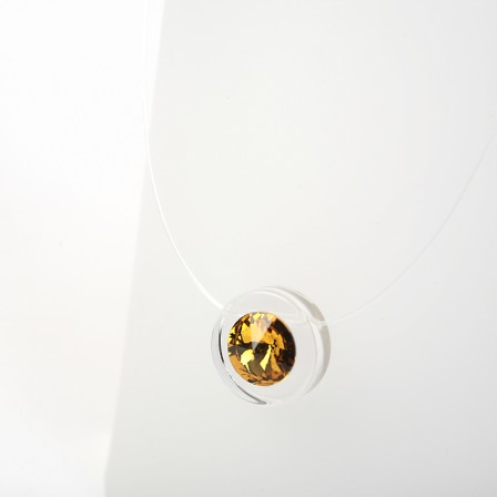 Un éléments en Plexiglas transparent dans lequel est fixé un fil de nylon . Un cristal est inséré au centre .