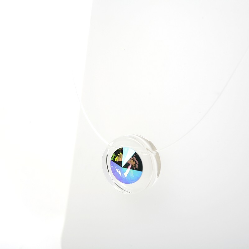 Un éléments en Plexiglas transparent dans lequel est fixé un fil de nylon . Un cristal est inséré au centre .