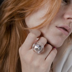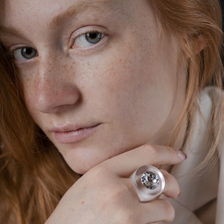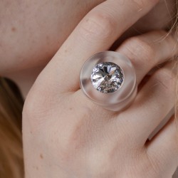 Corps de la bague en Plexiglas . Un cristal est inséré au milieu .