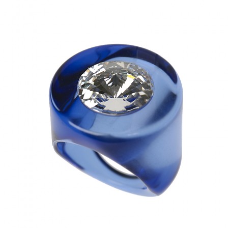 Corps de la bague en Plexiglas . Un cristal est inséré au milieu .