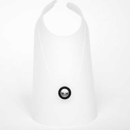 Un éléments en Plexiglas dans lequel est fixé un fil de nylon . Un cristal est inséré au centre .