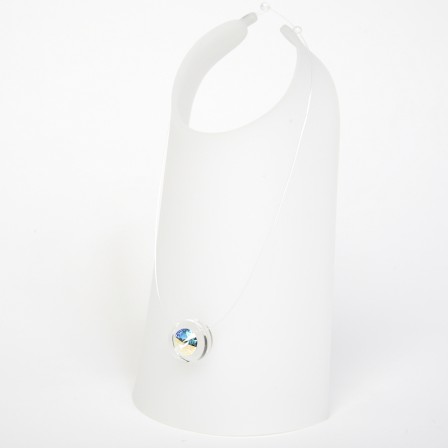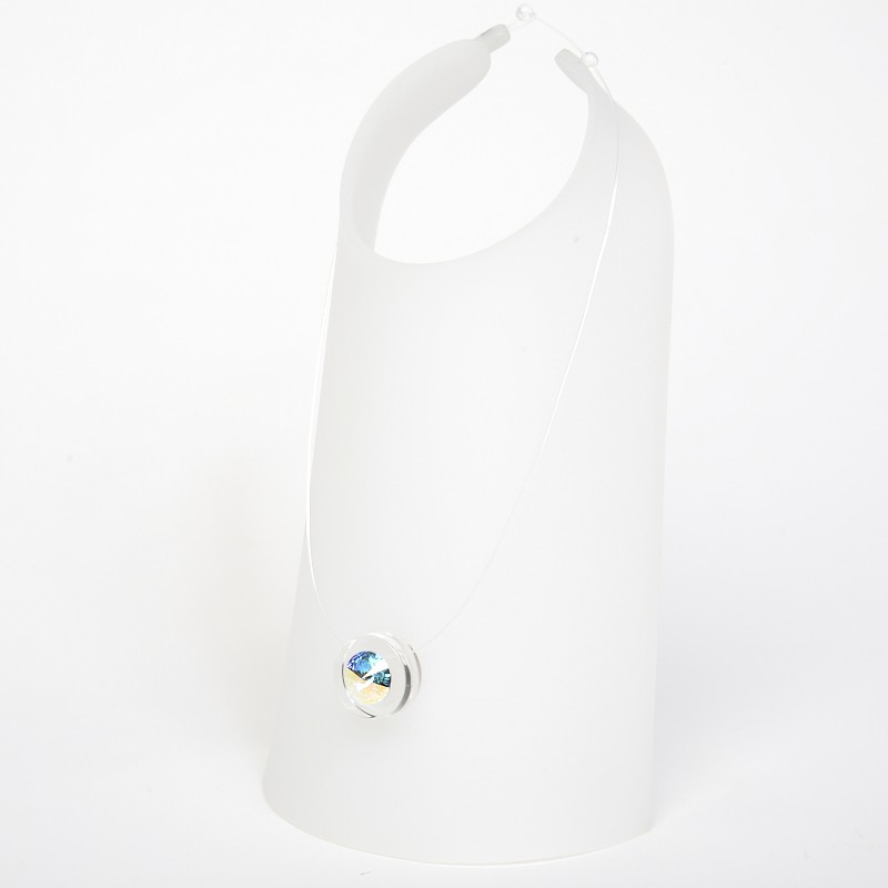 Un éléments en Plexiglas dans lequel est fixé un fil de nylon . Un cristal est inséré au centre .