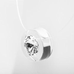 Un éléments en Plexiglas dans lequel est fixé un fil de nylon . Un cristal est inséré au centre .