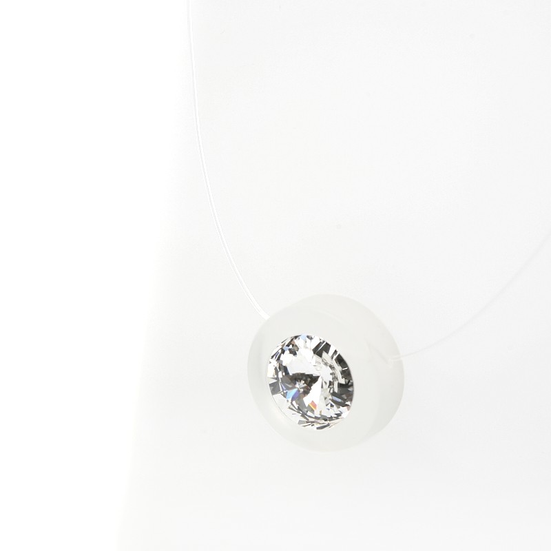 Un éléments en Plexiglas dans lequel est fixé un fil de nylon . Un cristal est inséré au centre .