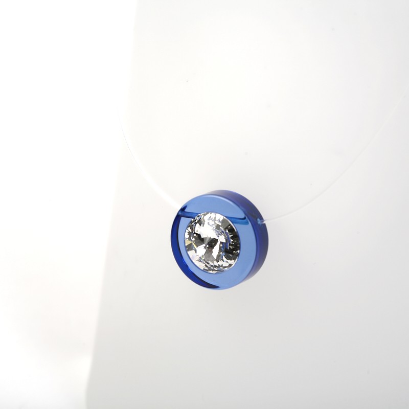 Un éléments en Plexiglas dans lequel est fixé un fil de nylon . Un cristal est inséré au centre .