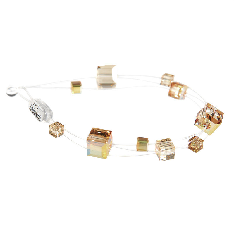 Bracelet composé de cubes de cristal de différentes dimensions . Ceux ci sont montés sur 2 rangs de fil nylon.