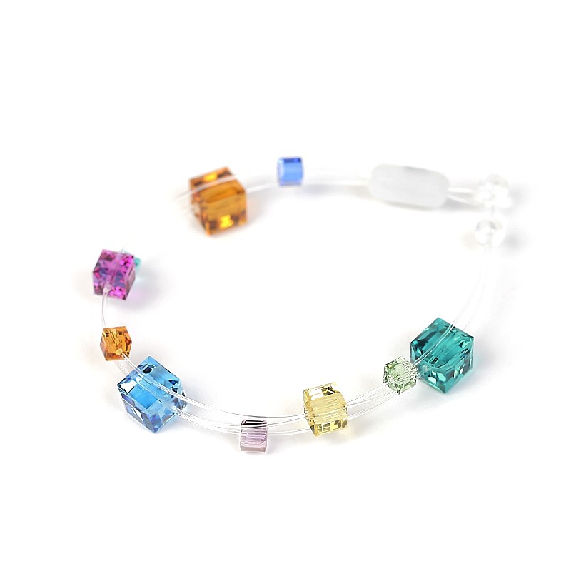 Bracelet composé de cubes de cristal de différentes dimensions . Ceux ci sont montés sur 2 rangs de fil nylon.
