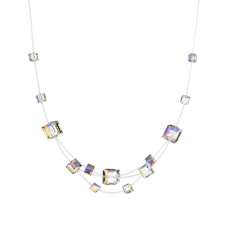 Collier composé de cubes de cristal de différentes dimensions . Ceux ci sont montés sur 2 rangs de fil nylon.