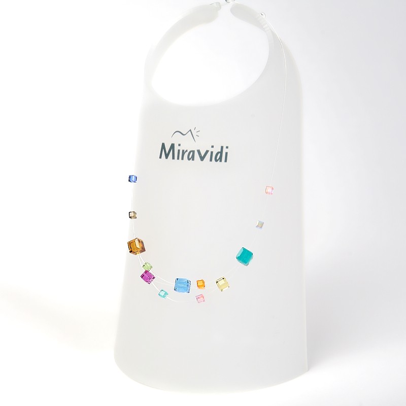Collier composé de cubes de cristal de différentes dimensions . Ceux ci sont montés sur 2 rangs de fil nylon.