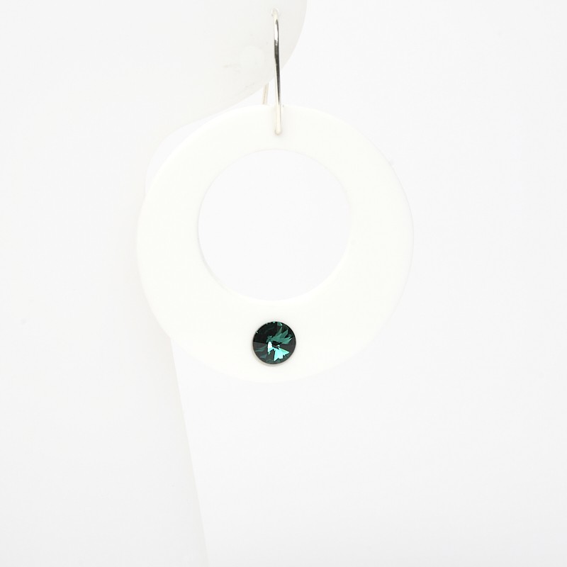 Boucles d'oreilles en Acrylique recyclé opaque avec un cristal incrusté en bas.