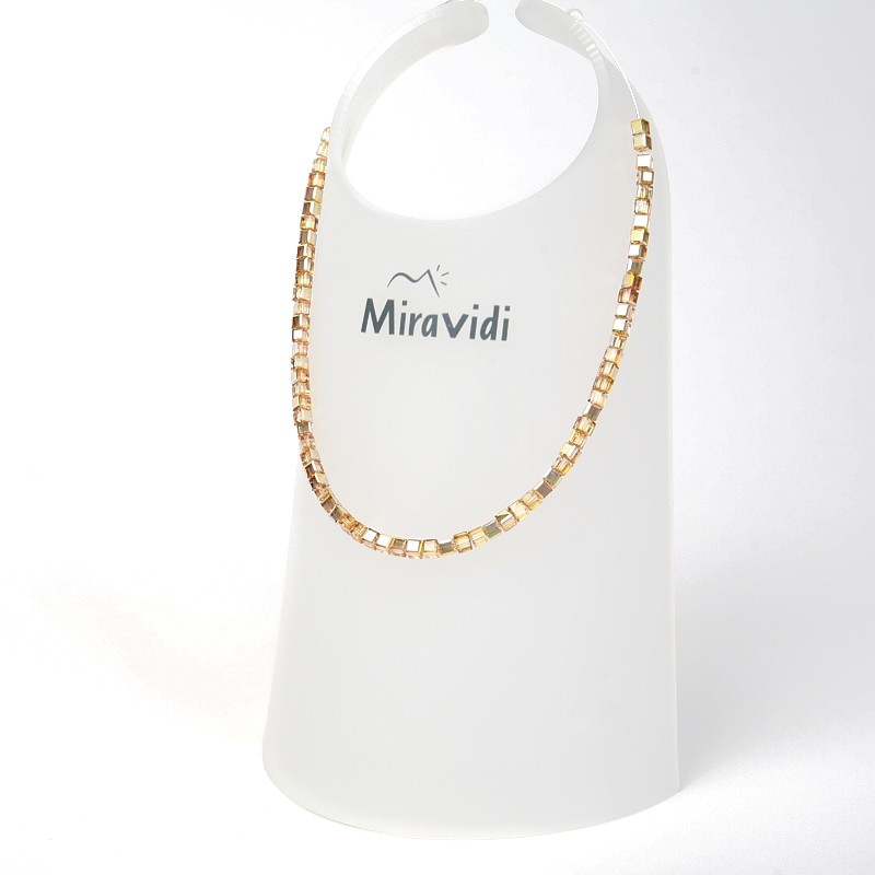 Des cubes en cristal de 4 mm de coté sont enfilés sur un fil de nylon .