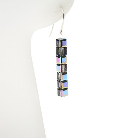 Des cubes en cristal de 4 mm de coté sont enfilés sur un fil de nylon .