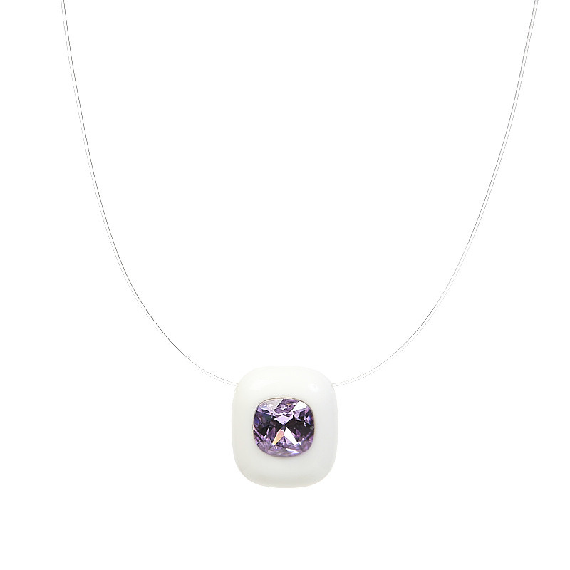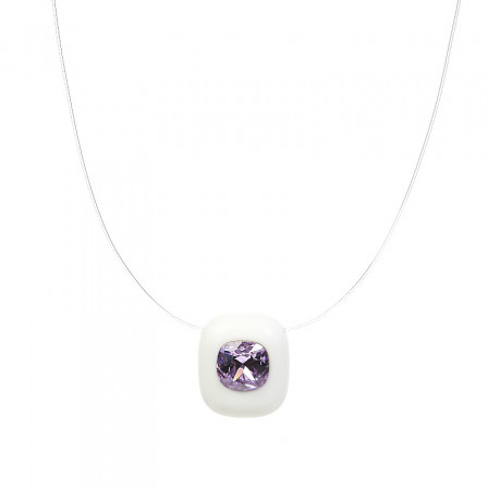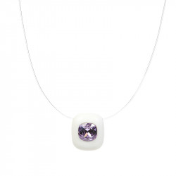 Un cristal décentré sur un Plexiglas blanc ( 2,5 x 2 cm ), suspendu sur un fil de nylon. Longueur 42,5 cm, un réglage permet de réduire la longueur totale de 2 cm.