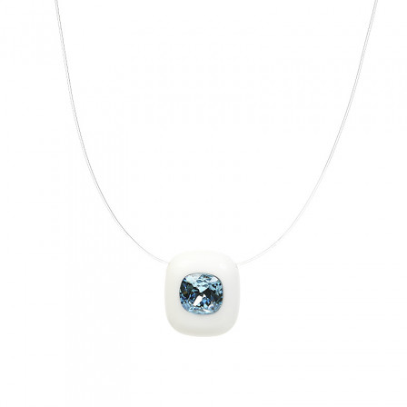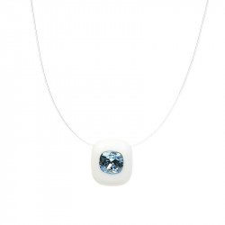 Un cristal décentré sur un Plexiglas blanc ( 2,5 x 2 cm ), suspendu sur un fil de nylon. Longueur 42,5 cm, un réglage permet de réduire la longueur totale de 2 cm.