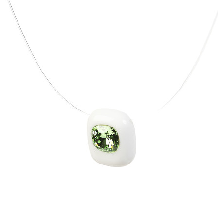 Un cristal décentré sur un Plexiglas blanc ( 2,5 x 2 cm ), suspendu sur un fil de nylon. Longueur 42,5 cm, un réglage permet de réduire la longueur totale de 2 cm.