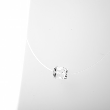 Pendentif composé d’un cube de cristal monté sur un fil de nylon. Le cube mesure 8 mm de coté.