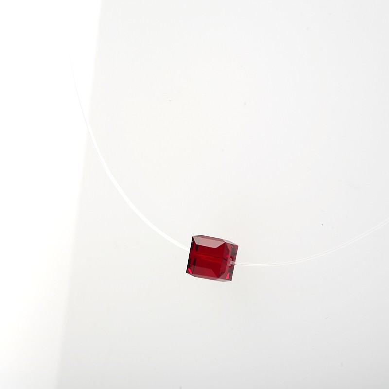 Pendentif composé d’un cube de cristal monté sur un fil de nylon. Le cube mesure 8 mm de coté.