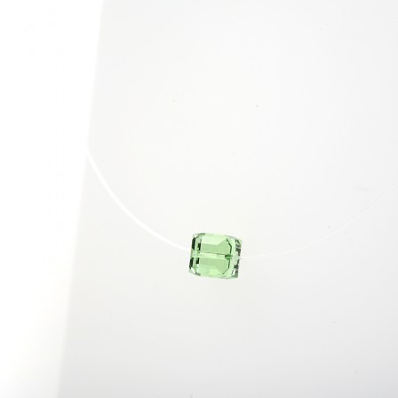 Pendentif composé d’un cube de cristal monté sur un fil de nylon. Le cube mesure 8 mm de coté.